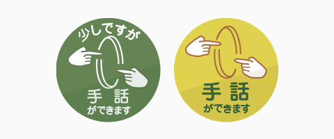 イトーヨーカドーでは、簡単な手話ができるように社員への教育を進めております。また、基本的な手話技能の習得をめざす講習会を受講し、修了した社員には手話バッジを交付し、お客さまに手話ができる社員が一目でわかるようにしています。